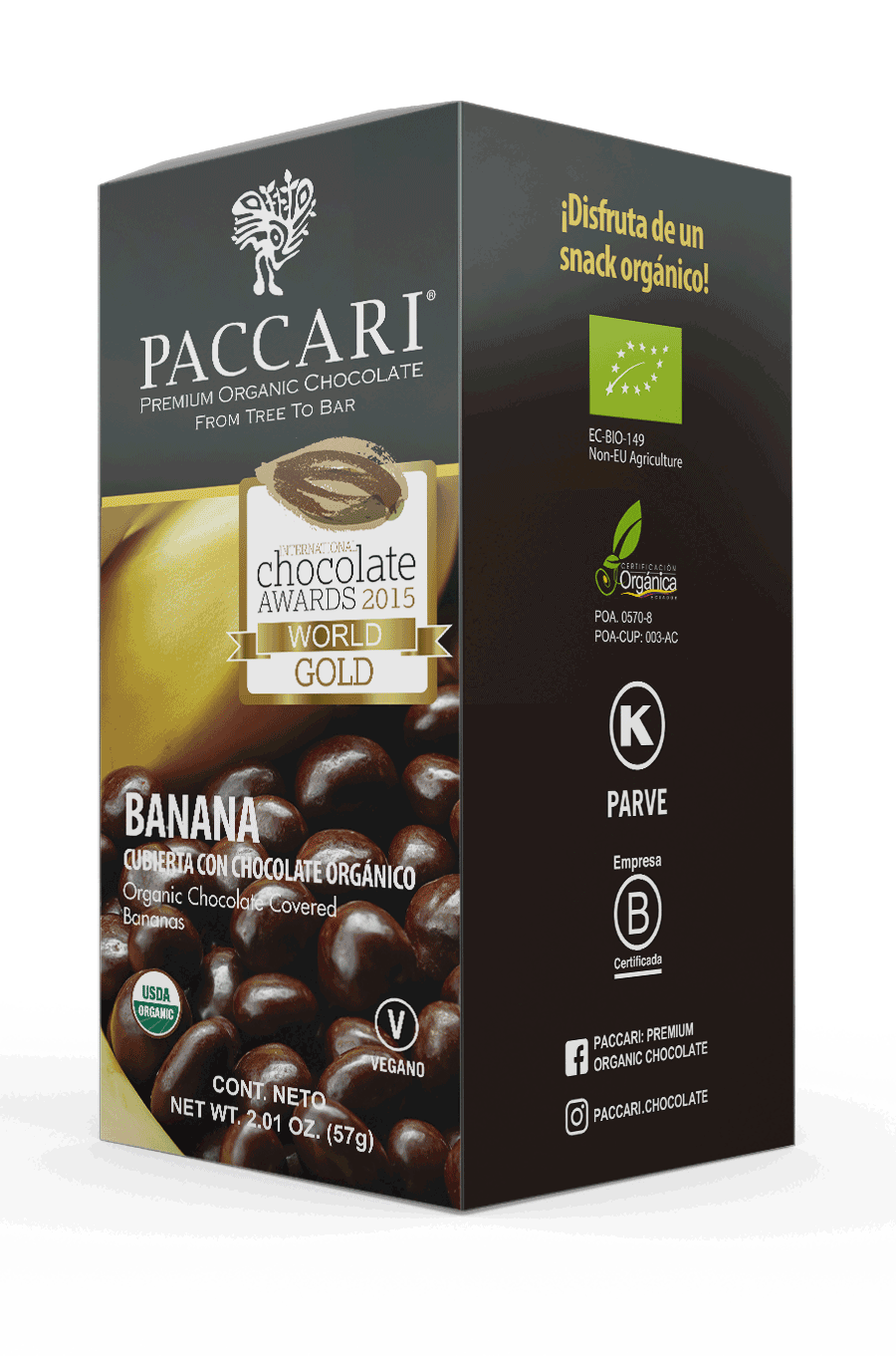 El sabor tropical del banano ecuatoriano envuelto en una capa de chocolate oscuro crujiente. Un bocado dulce y energético.