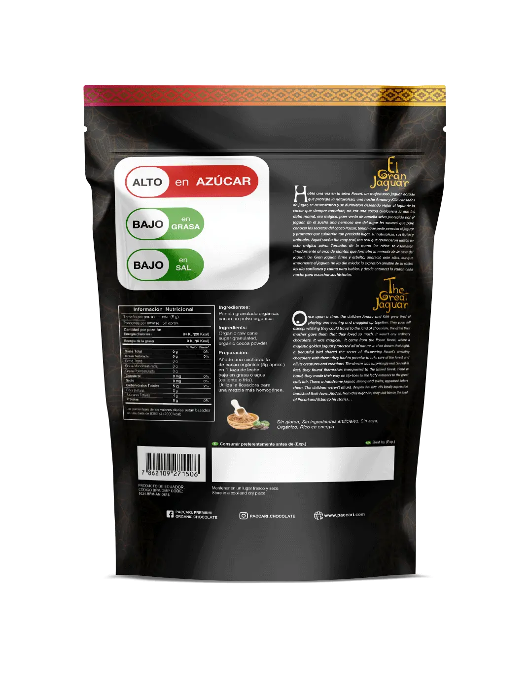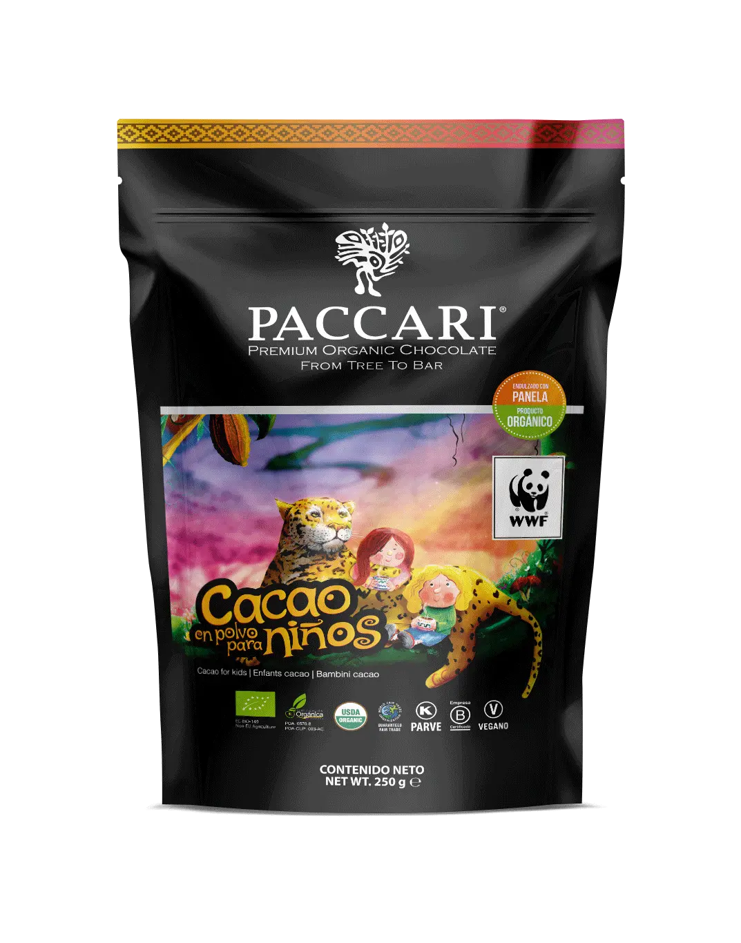 Energía saludable para los pequeños. Cacao orgánico mezclado con panela natural. Delicioso, nutritivo y fácil de disolver en leche o bebidas vegetales.