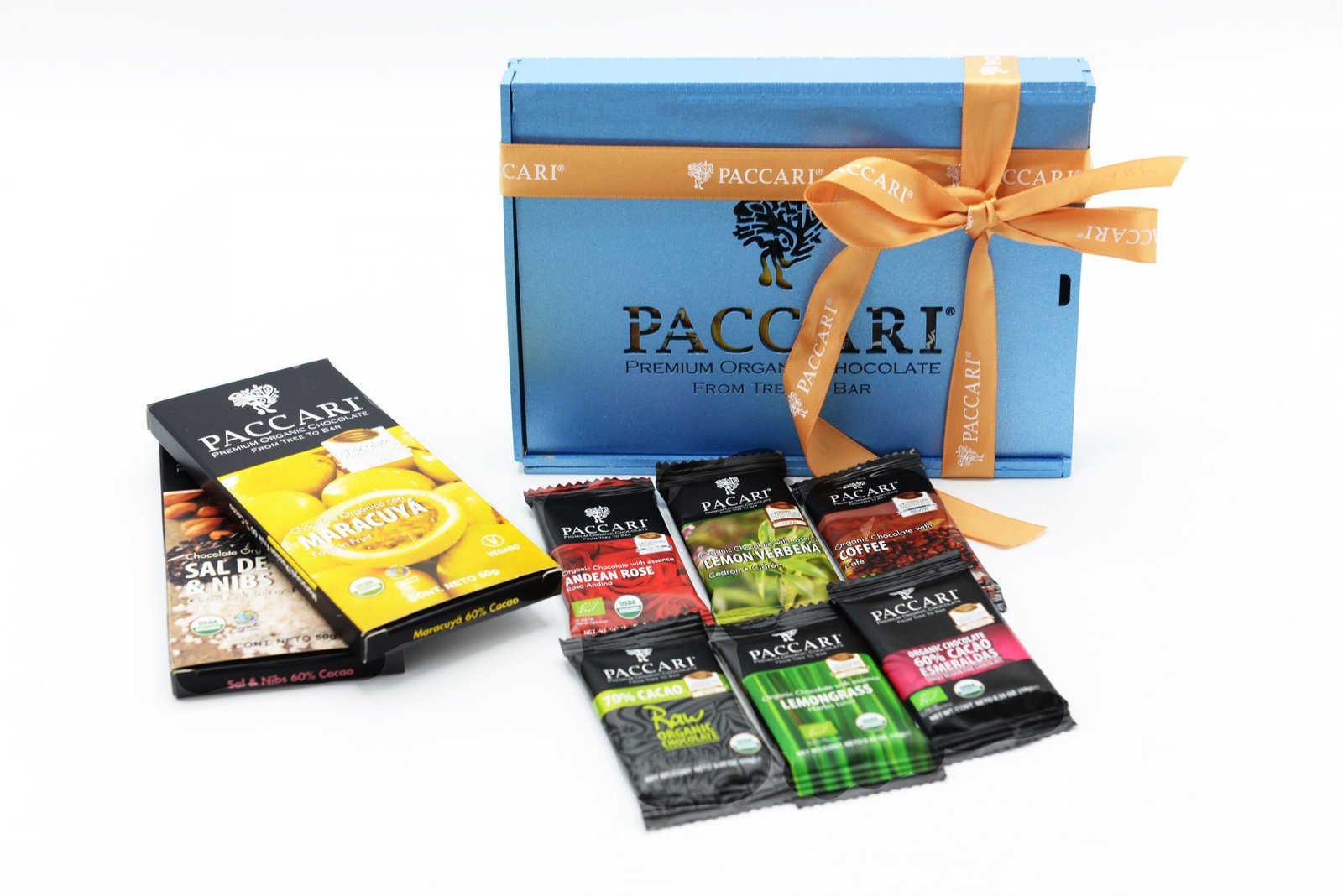 Elegancia y variedad. Caja de madera fina conteniendo una combinación de formatos para disfrutar diferentes experiencias de chocolate.