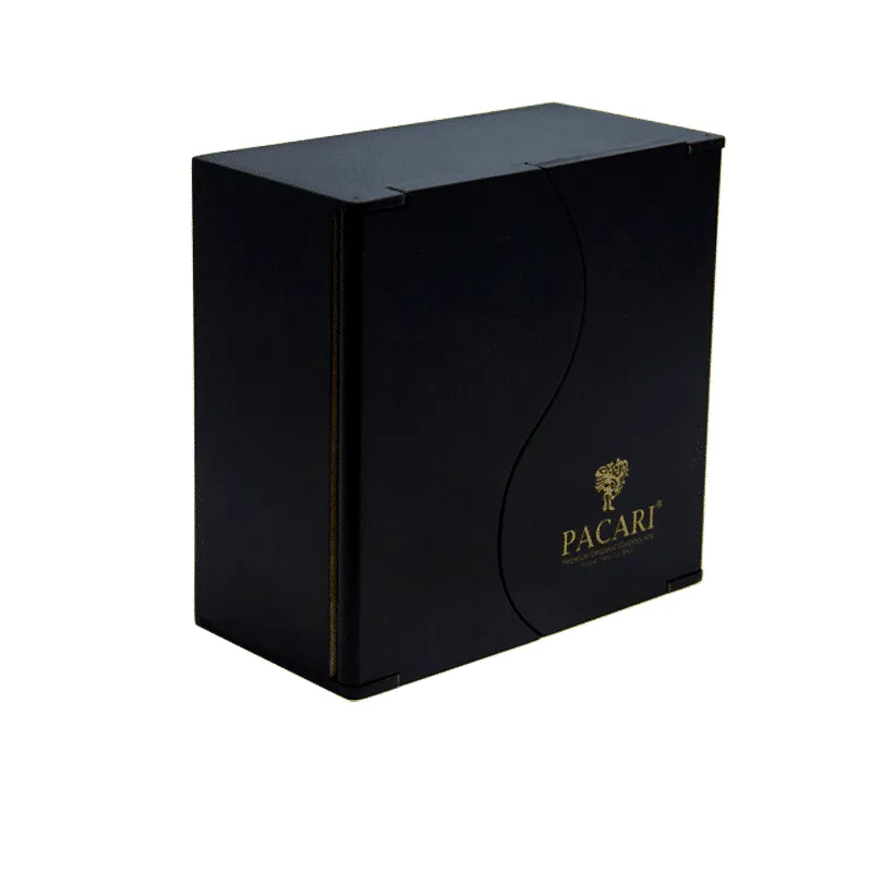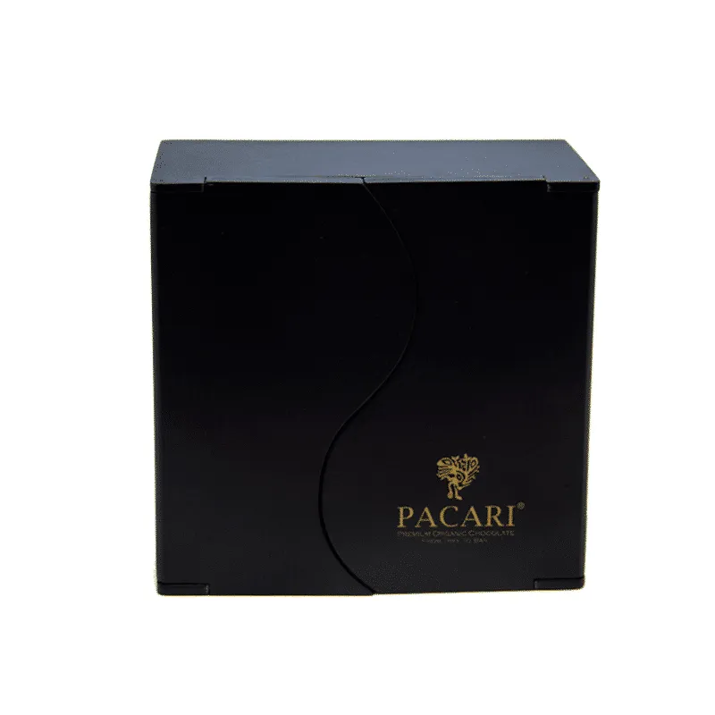 Estilo moderno. Caja de madera negra con 8 barras y 2 cubiertos, ideal para regalos sobrios y elegantes.