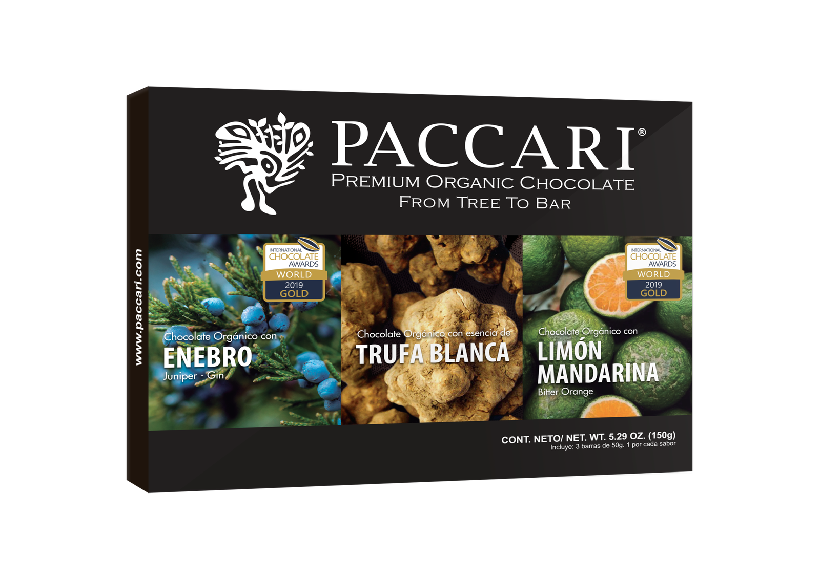 Una selección para paladares curiosos. Sabores cítricos, resinosos y terrosos en un trío de chocolates sofisticados.