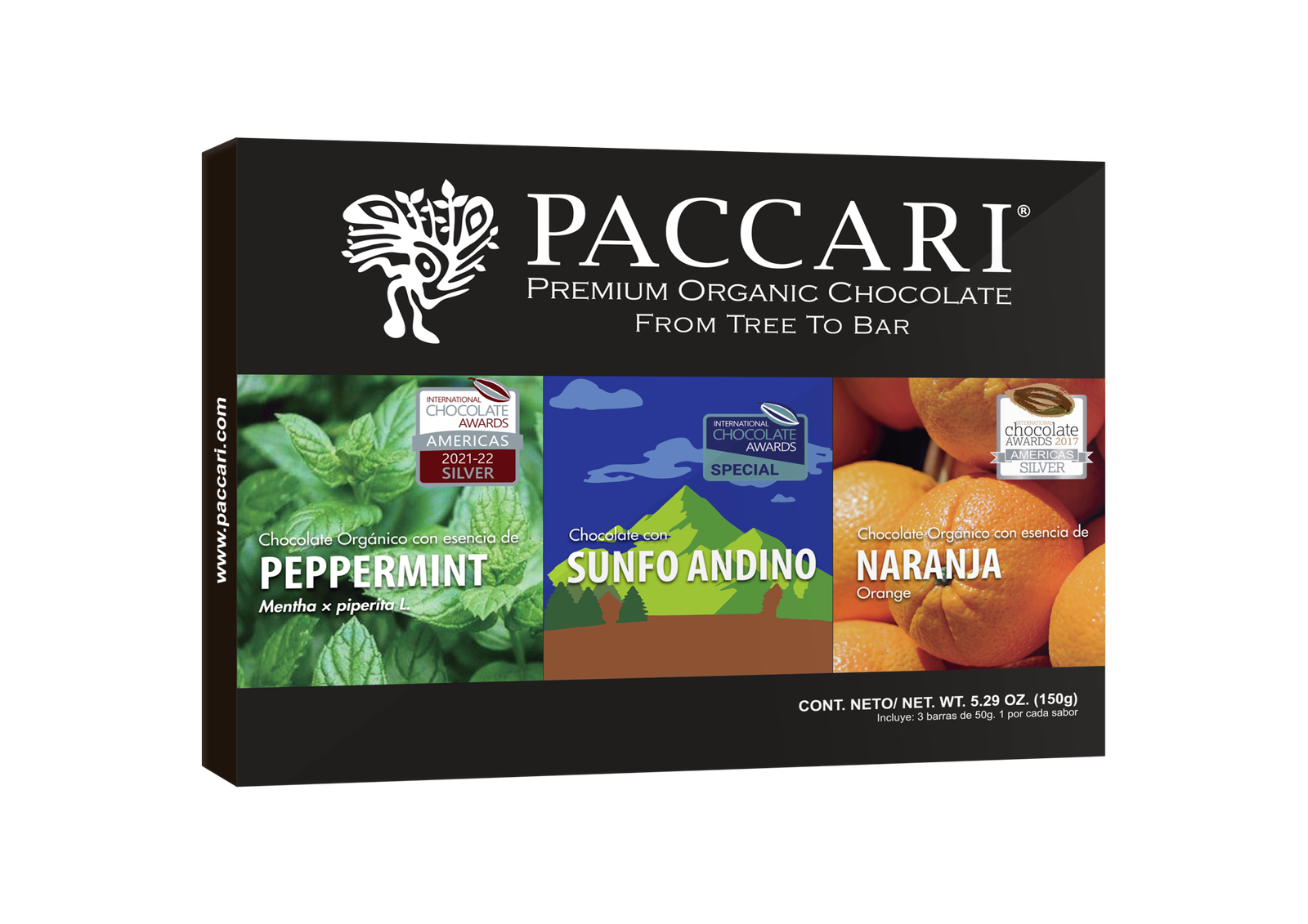 Chocolates que refrescan y despiertan. La menta andina (Sunfo), la naranja cítrica y la menta piperita intensa en un solo pack.