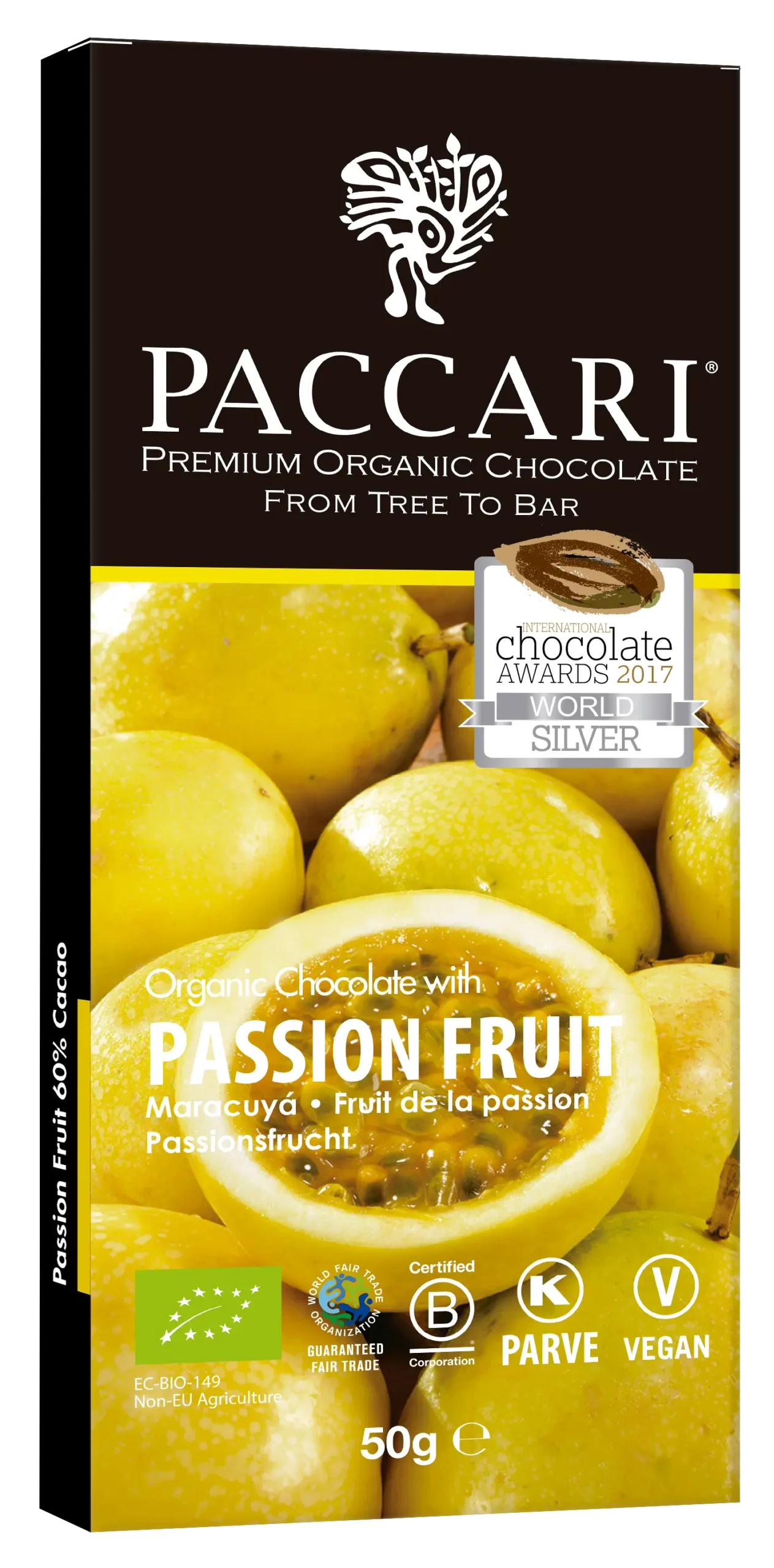 Chocolate oscuro con la pasión del Maracuyá.