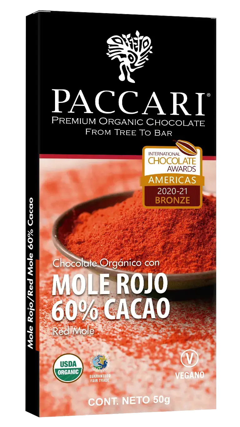 Chocolate inspirado en el Mole mexicano. Especiado y complejo.