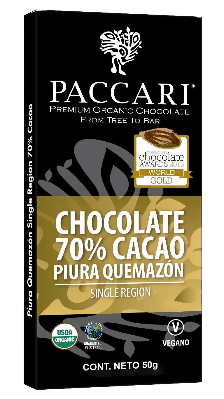 Un chocolate excepcional elaborado con cacao blanco de la región de Piura. Ofrece un perfil de sabor complejo y brillante, con notas distintivas de lima, cítricos y especias suaves. Una joya para conocedores.