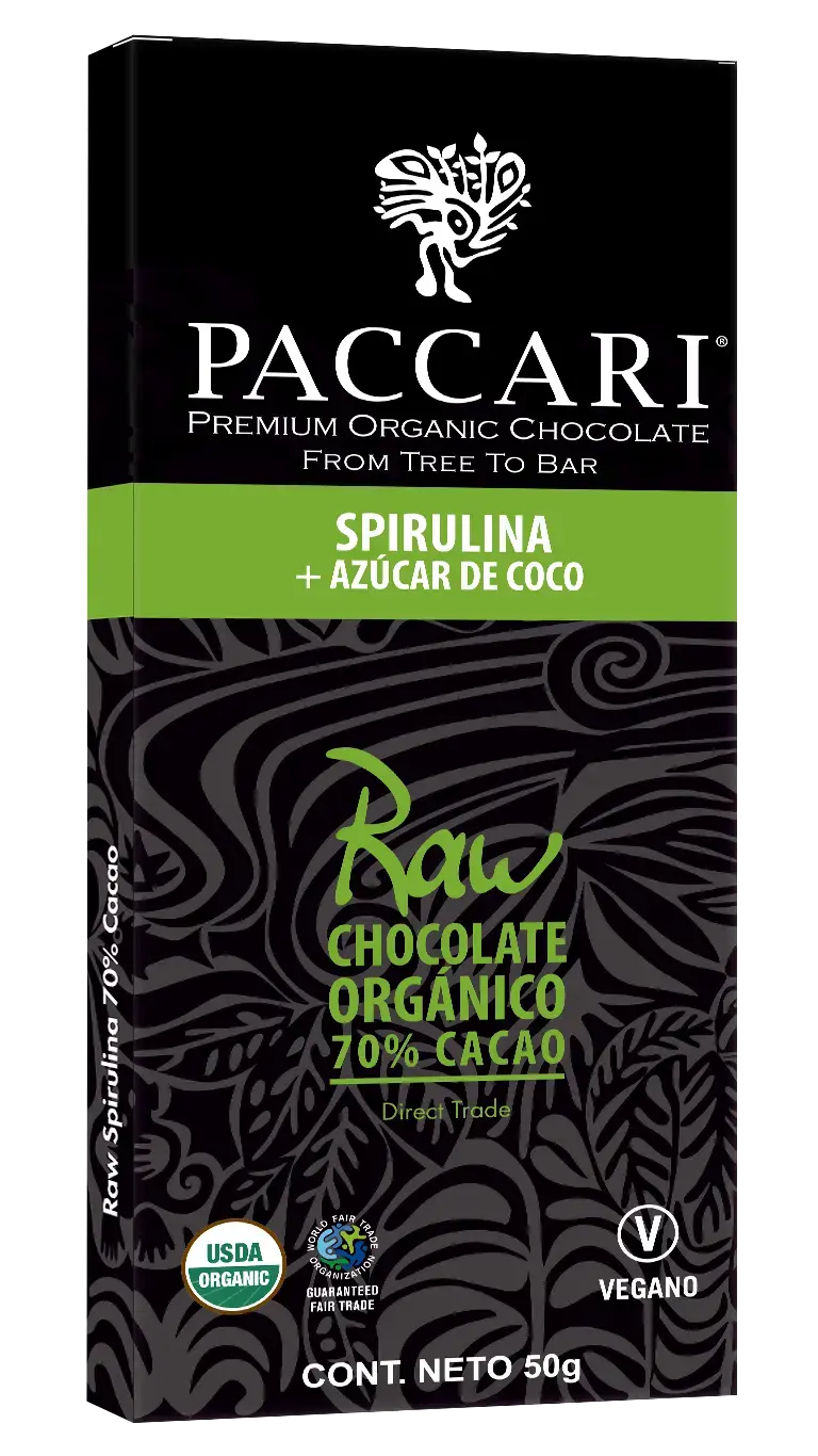 Chocolate crudo con Spirulina, el superalimento de algas rico en proteínas.