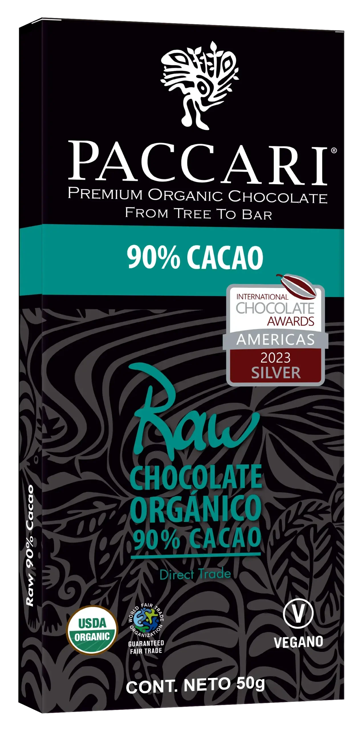 Chocolate crudo de alta intensidad con 90% de cacao y mínima azúcar.