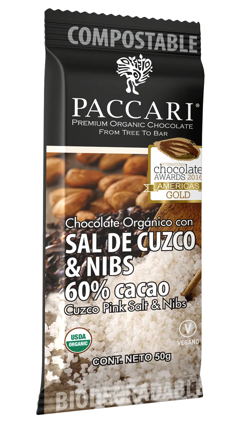 Nuestra barra icónica combina chocolate oscuro con Sal de Cuzco ancestral y nibs de cacao tostado. La sal mineral realza los sabores del cacao mientras los nibs añaden un crujido irresistible. Una experiencia gourmet completa.
