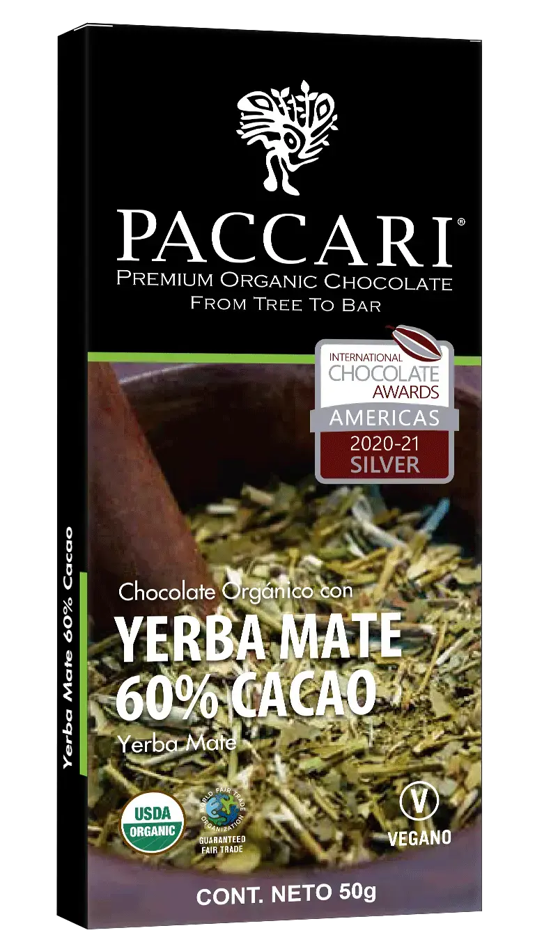 Chocolate oscuro con Yerba Mate sudamericana.